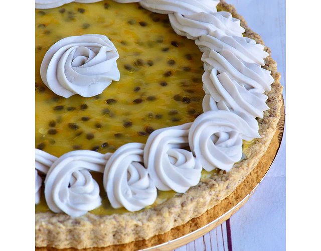 Delicioso postre en base a ingredientes vegetales y sin azúcar añadida. Base crujiente, junto a una delicada crema de limón o maracuyá. Cubierta con crema de coco.